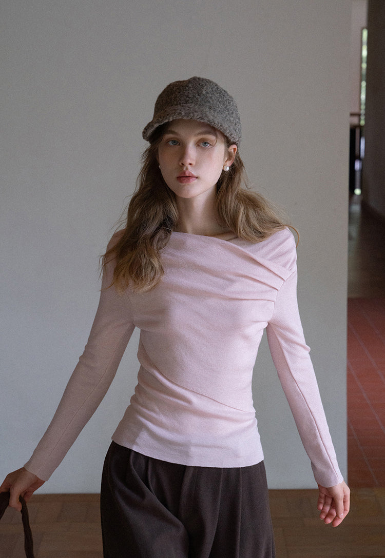 EGGKA Women's Autumn Winter Off-the-shoulder French Cross Neck Long Sleeve One Shoulder Sweater -