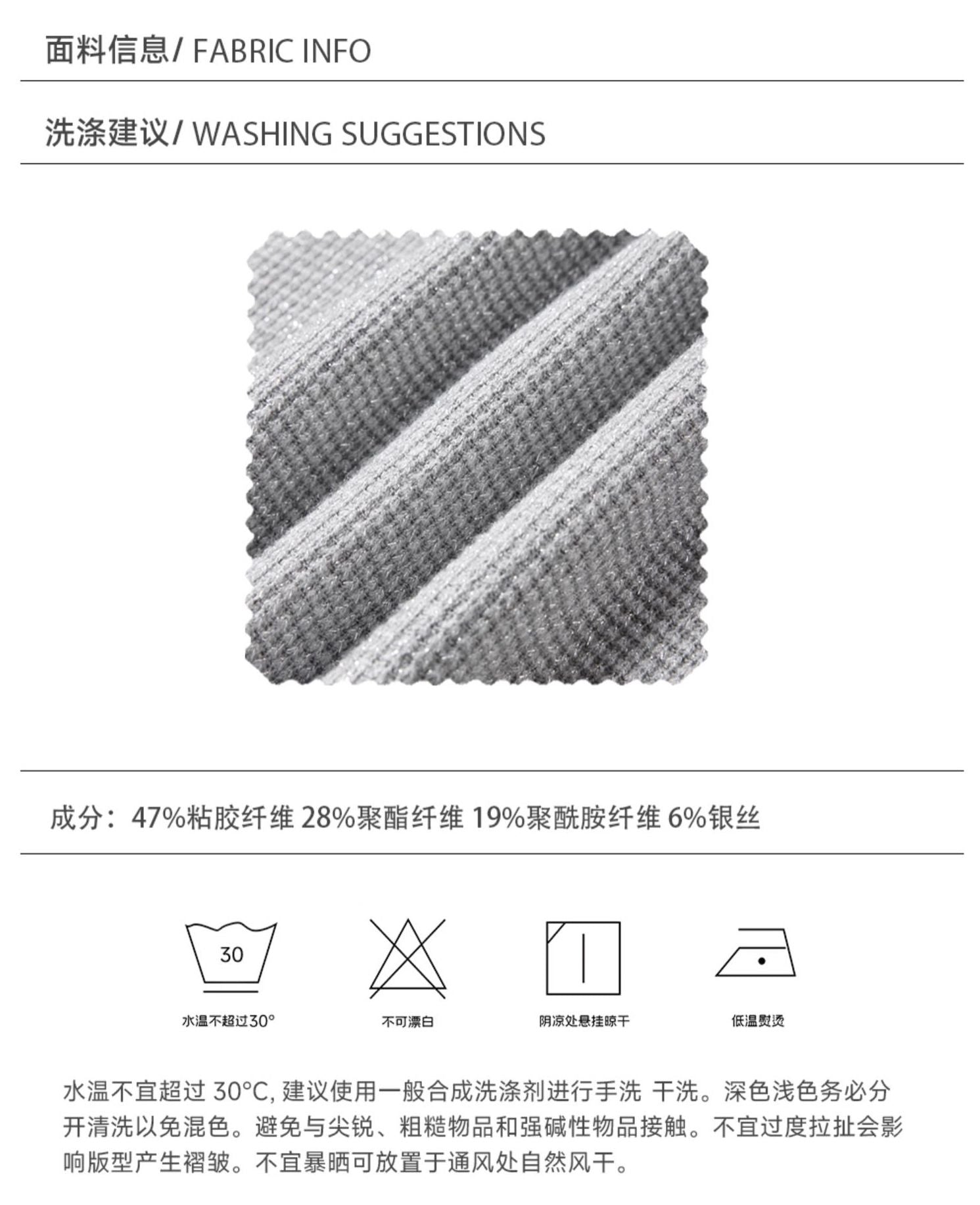Material: Thick and warm honeycomb wool fabric. 47% viscose 28% polyester 19% polyamide 6% silver